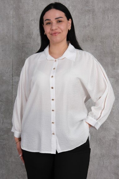 هذه القميص النسائية ذات الحجم الكبير تأتي بلون أزرق فاتح وتتميز بتصميم بكم قصير. القميص يحتوي على لوحة أمامية بأزرار للإغلاق. الياقة مصممة بأسلوب كلاسيكي للقميص. هناك تفصيل جيب صغير على الصدر اليسار. القميص يتميز بقصّة مريحة وفضفاضة، مما يجعله مثاليًا للاستخدام اليومي. هيكل القماش يضمن ارتداءً مريحًا ويُبقي مرتديه باردًا في الطقس الحار.