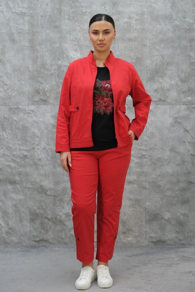 هذا المنتج عبارة عن طقم رياضي نسائي كبير الحجم بثلاث قطع. يتكون من قميص علوي وسترة وبنطلون. القطعة العليا هي قميص أبيض قصير الأكمام مع طبعة زهور على الجهة الأمامية. السترة مزودة بسحاب في الجهة الأمامية، مما يسمح بارتدائها وخلعها بسهولة. القماش خفيف الوزن وقابل للتنفس، مما يوفر الراحة أثناء الأنشطة الرياضية. البنطلون يأتي بخصر مرن لارتداء مريح ويتميز بتفاصيل سحاب. اللون الأخضر الفاتح المستخدم في التصميم يعكس نضارة الربيع.