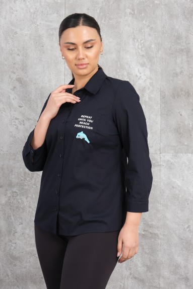 هذا المنتج عبارة عن قميص نسائي بحجم زائد. القميص باللون الأبيض ويتميز بأزرار على المقدمة. هناك تفصيل دبوس باللون الذهبي على الصدر وأزرار باللون الذهبي على طول القميص. القميص مصمم للارتداء اليومي بفضل قصته المريحة والفضفاضة. يحتوي على أكمام بطول ثلاثة أرباع، مع تفاصيل أزرار في الأساور. الجزء الخلفي من القميص يحتوي على تصميم مطوي ويستمر بالقصة الواسعة من الكتفين.