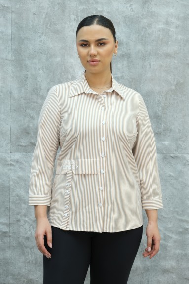 تعتبر هذه القميص النسائي ذات المقاس الكبير اختياراً أنيقاً ومريحاً. يتميز القميص بما يلي: