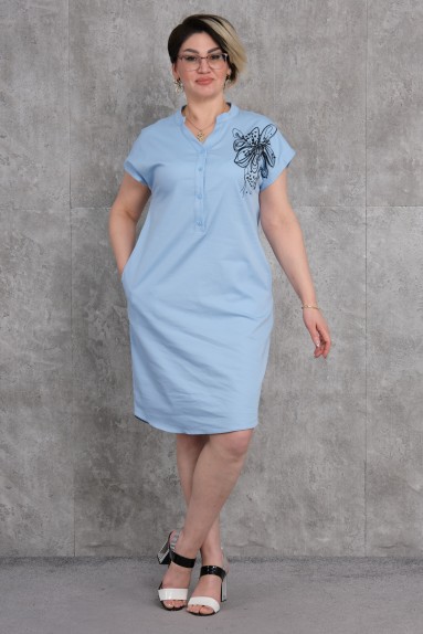 This plus-size dress is ideal for both everyday wear and special occasions with its comfortable and stretchy fabric. It offers both comfort and elegance with its bat-winged sleeves and V-neck design.