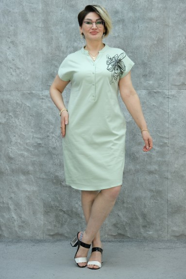 This dress is a stylish and comfortable option designed for plus-size women. It offers a modern and elegant look with white floral patterns on a dark brown background. Featuring a front gold zipper detail, this dress is ideal for both casual and special occasions. It has short sleeves and button details on the sleeves. Ending at the knee, this dress provides a refreshing experience in summer with its cotton fabric.