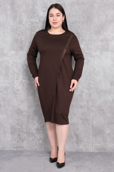Bu büyük beden kadın elbisesi, göz alıcı leopar deseni ile dikkat çekmektedir. Yaka kısmında bulunan yarım düğmeler ve yuvarlak yaka detayı, hem şıklık hem de rahatlık sunar. Uzun kolları katlanarak kullanılabilir, böylece farklı stiller yaratılabilir. Diz boyunda olan bu elbise, hafif ve rahat kumaşı sayesinde gündelik kullanıma uygundur. Siyah manşet ve etek ucu detayları elbiseye modern bir dokunuş katmıştır.