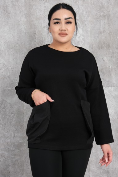 هذه البلوزة مصممة خصيصاً للنساء وتقدم مظهراً عصرياً وأنيقاً. هي سوداء اللون وتتميز بزخارف دائرية بأحجام مختلفة. تحتوي على قصَّة واسعة ومريحة مع أكمام طويلة ذات أساور واسعة. الجزء الخلفي من البلوزة يتضمن فتحة صغيرة عند العنق مع زر إغلاق. مصنوعة من قماش عالي الجودة، وهي مناسبة للاستخدام اليومي والمناسبات الخاصة. المنتج يجمع بين الأناقة والراحة.