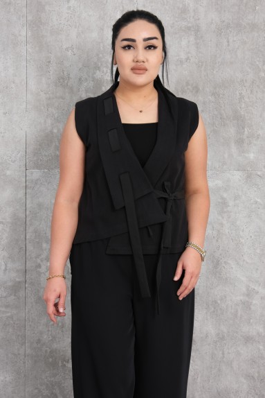 يتميز هذا السترة النسائية بتصميم أنيق وحديث. المنتج يحتوي على قطع غير متماثلة وتفاصيل أزرار في الأمام. السترة بدون أكمام ولها قص مريح. تتميز باللون البيج الذي يمكن استخدامه في مختلف تنسيقات الأزياء. التصميم الخلفي بسيط وخالٍ من التفاصيل. يضمن نسيجها الخفيف الراحة حتى في الطقس الدافئ.