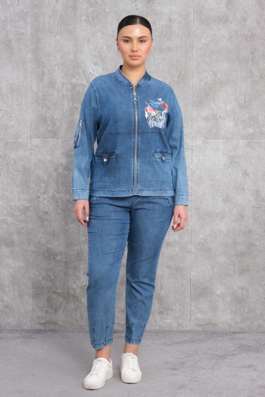 This product is a Plus Size Women’s Sports Set. The set comes in a comfortable green color, consisting of a long-sleeved top and a bottom piece. The front of the top features a zipper and practical pockets. The bottom part is designed with adjustable elastic at the ankles and has a comfortable fit. The fabric is soft-textured and stretchy, providing freedom of movement. It is suitable for both sports and daily wear.