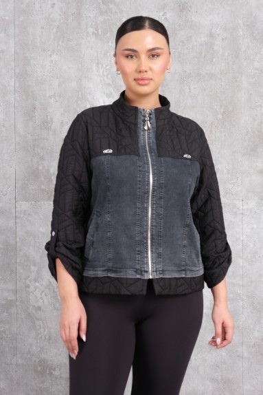 The product is a short sports jacket designed for plus-size women. It has a vibrant orange color, a zip in the front, and is made from a thin, comfortable fabric that is ideal for daily wear. The drawstring details and front appliqué provide a stylish look. Both the front and back of the jacket feature modern and sporty patterns, adding a touch of elegance.