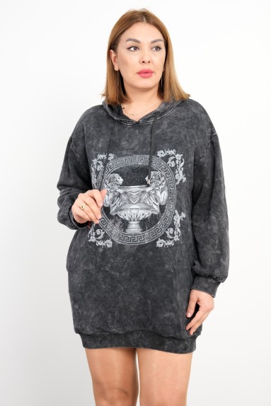 Это повседневное платье предлагает стильный и удобный вид. Дизайн с длинными рукавами и капюшоном обеспечивает дополнительный комфорт в холодные дни. У платья есть два передних кармана и регулируемая завязка на подоле. Оно идеально подходит для маленького размера и отличается шикарным стилем с узорами и надписями черного и белого цветов.
