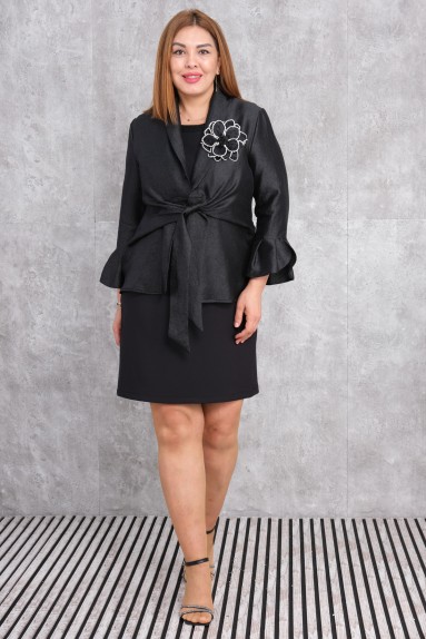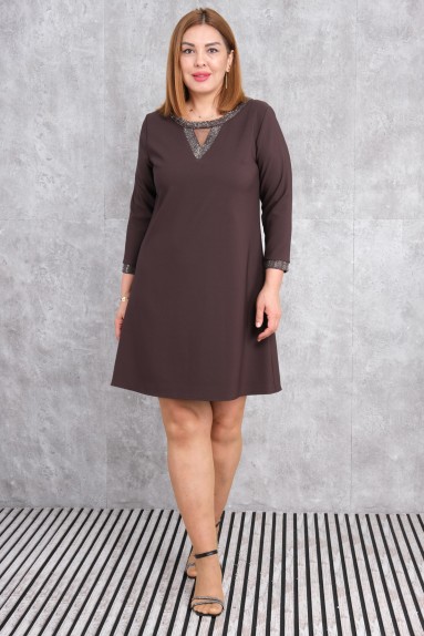 Büyük beden kadın elbisesi, uzun dantel kol detayları ve siyah renkte tasarlanmış şık bir elbisedir. Elbisenin üst kısmı dantel detaya sahip ve yarı şeffaf bir görünümdedir. Alt kısmı ise düz ve şıktır. Yarım kollu bu elbise, her vücut tipine uygun olarak tasarlanmış ve konforu ön planda tutmaktadır.